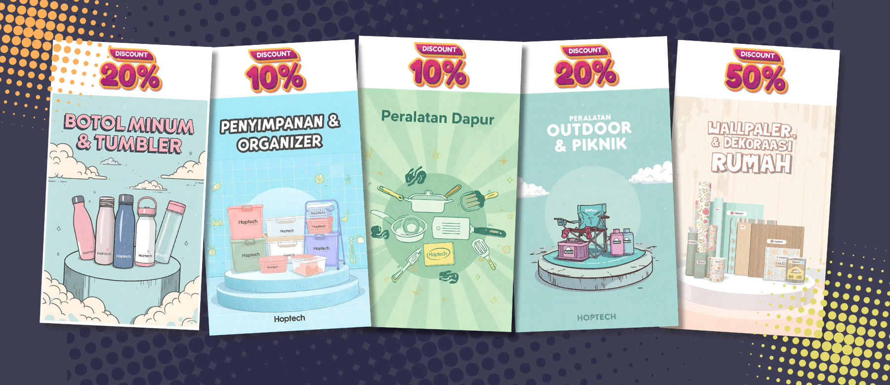 Hoptech adalah solusi lengkap untuk rumah dan gaya hidup modern. Kami menyediakan wallpaper, perlengkapan penyimpanan, peralatan dapur, alat kebersihan, home living, perlengkapan outdoor, dan olahraga dengan desain inovatif dan fungsional.